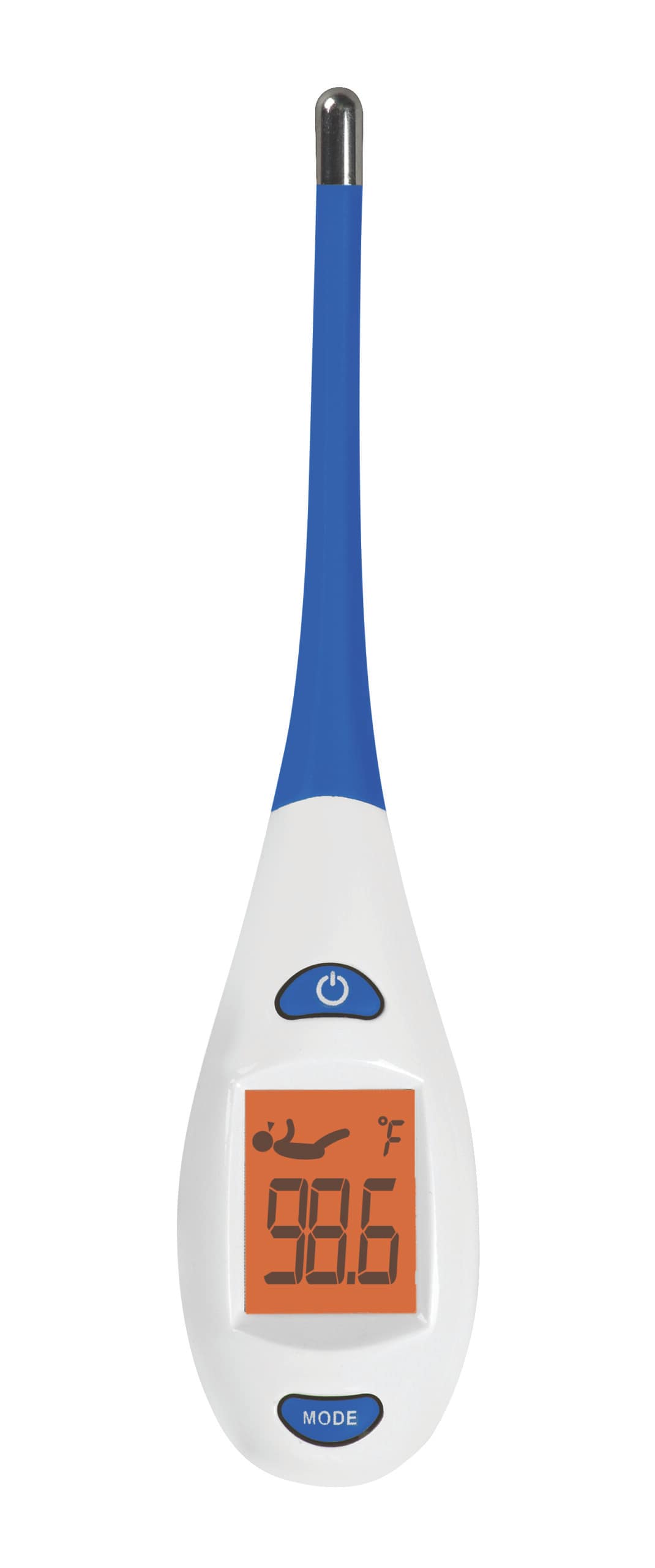 Utilizing a unique sensor, the digital thermometer rapidly samples the heat flowing from the blood vessels to the skin surface and translates it accurately to body temperature.
