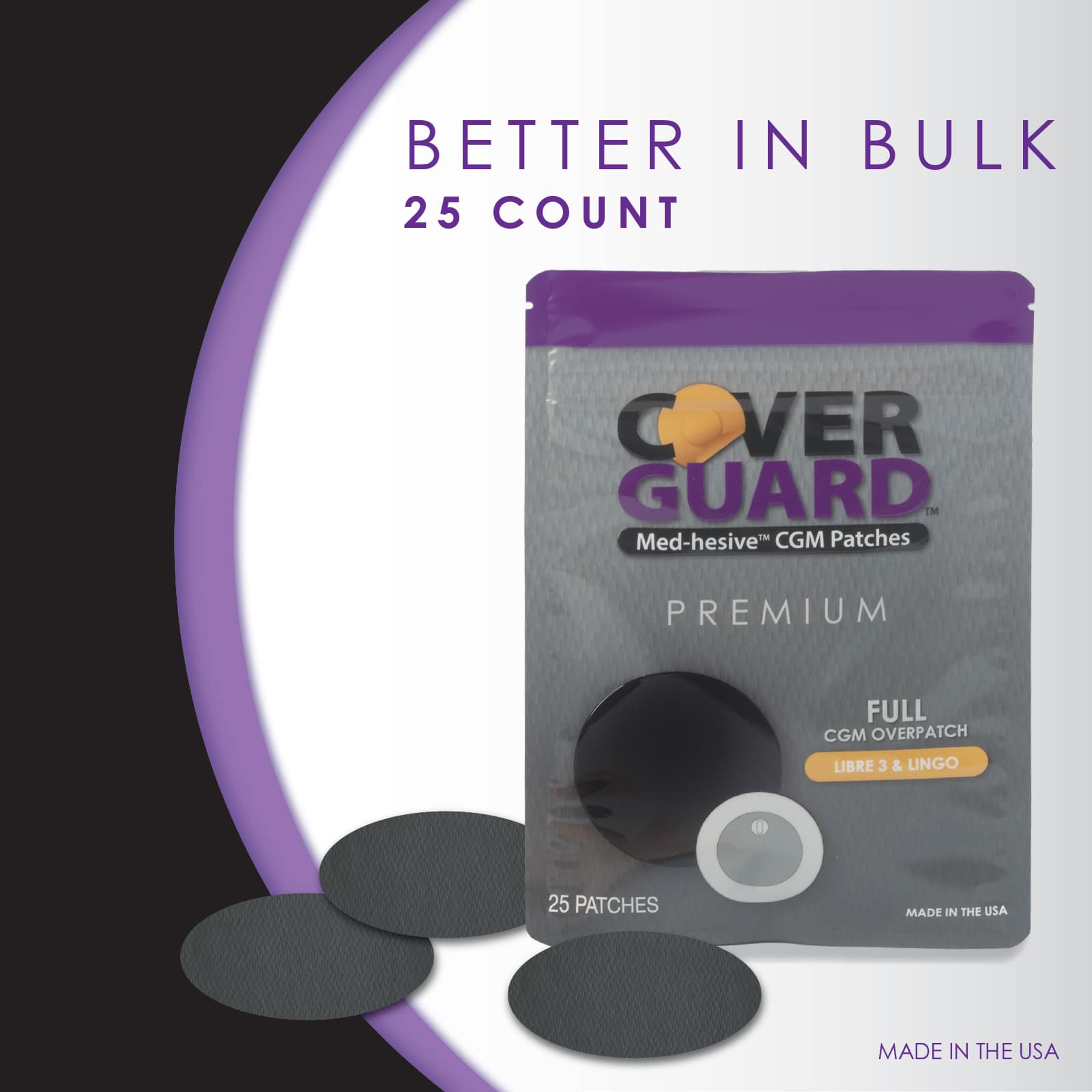 CoverGuard CGM Overpatch | Freestyle Libre 3 | Black Full Coverage Design| 25-Count | Waterproof Adhesive | Anti-Fray | Easy Application & Removal | Made in USA | Sensor Protection